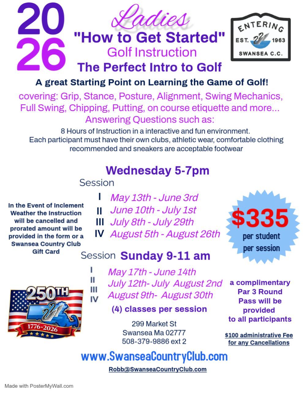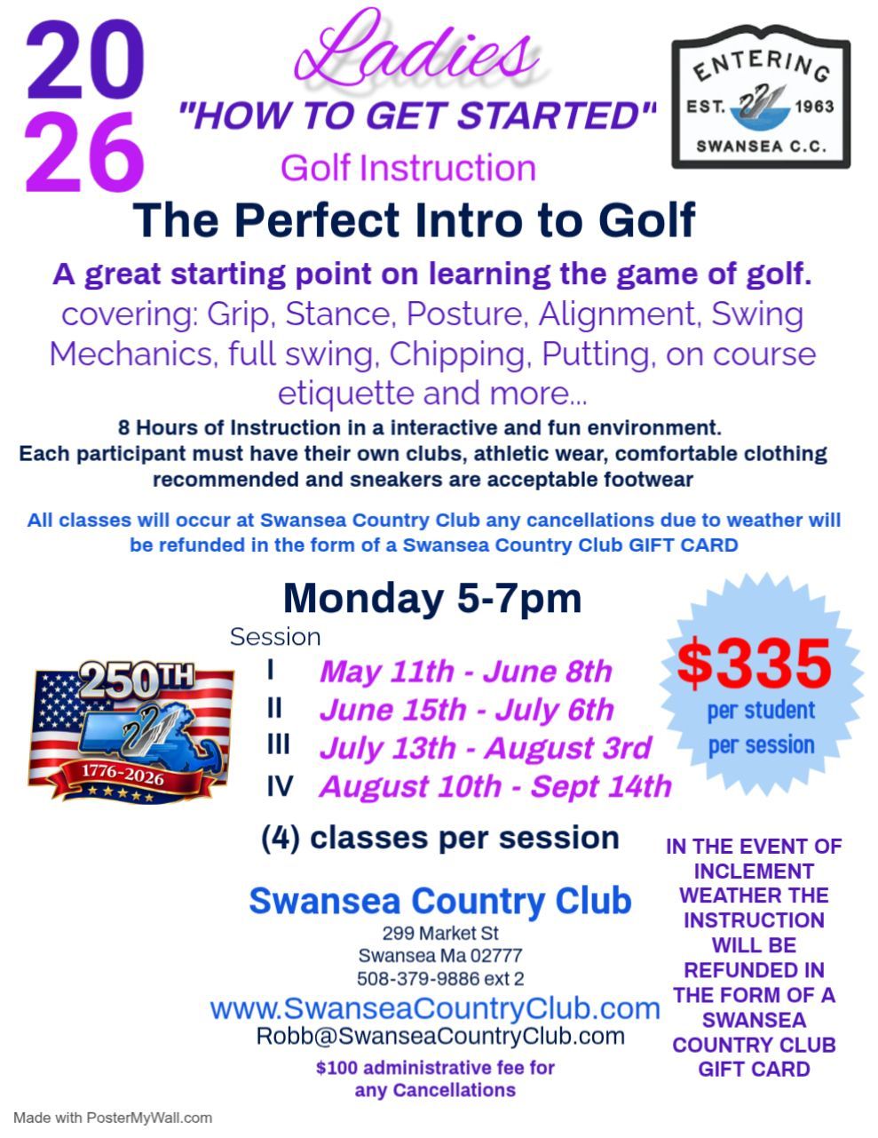 All Weather Cancellations of Camps will be Pro Rated and refunded via a Swansea Country Club Gift Card - there will be no exceptions